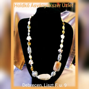 Natur színű achátokból készült hosszabb lánc ( 59 cm) fém köztesekkel, T-kapoccsal.