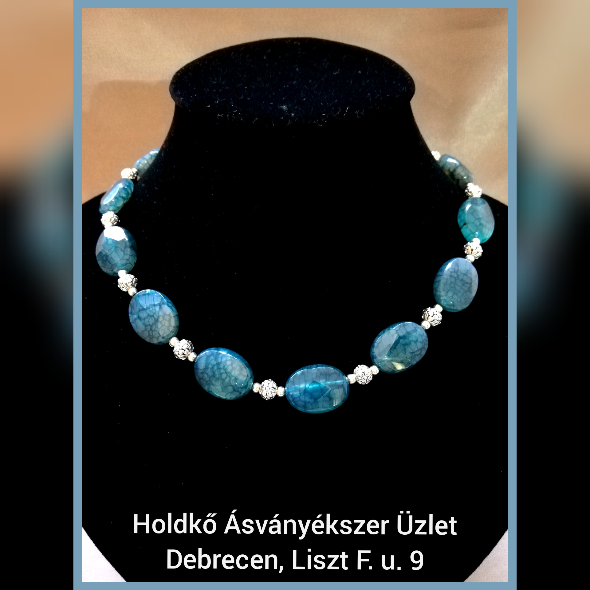 Fazettált, ovális, kék, erezett achátból készült rövid ( 44 cm) nyaklánc