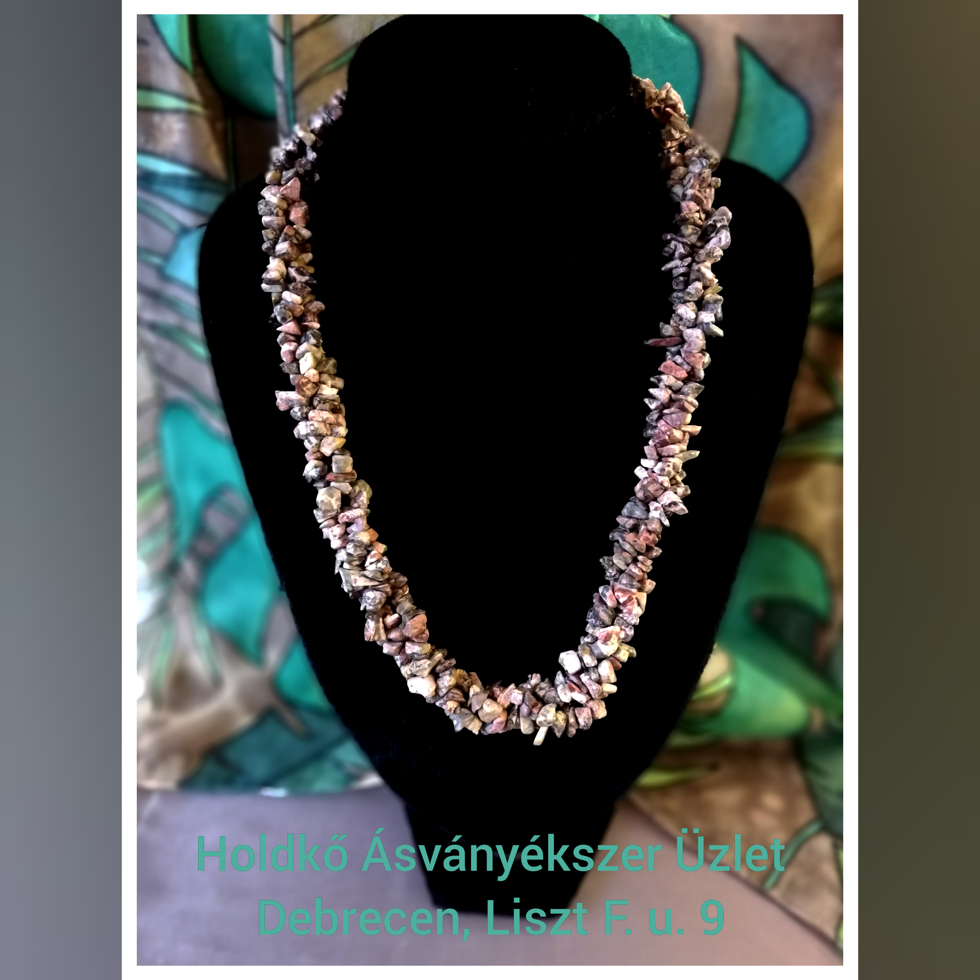 Törtszemes, 3 soros leopárd jáspis nyaklánc. Hossz.: 55 cm, lánchosszabbítós. A weboldalon található hozzá karkötő.