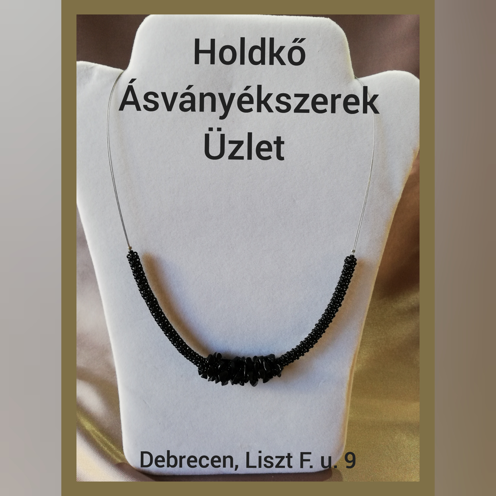 Törtszemes onixból és fekete gyöngyből készült a nyaklánc. Hossza: 43 cm, lánchosszabbítós.