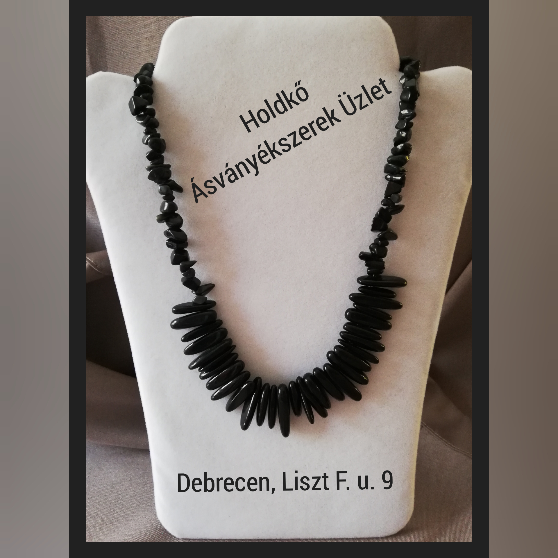 Szabálytalan formájú obszidiánból készült , 51 cm hosszú nyaklánc.