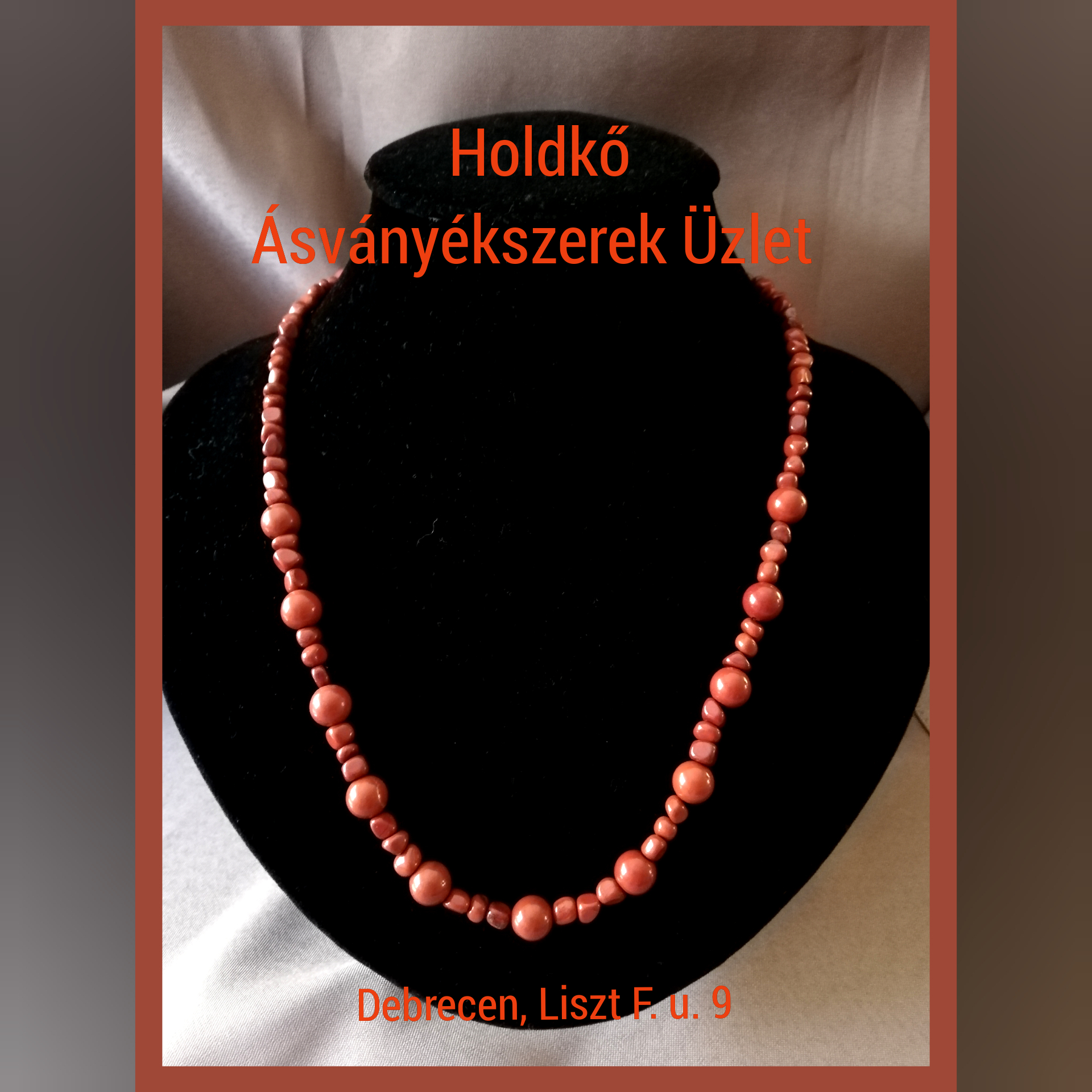 7 mm-es vörös jáspis golyóból és 4 mm-es alaktalan vörös jáspisból készült 54 cm hosszú nyaklánc.