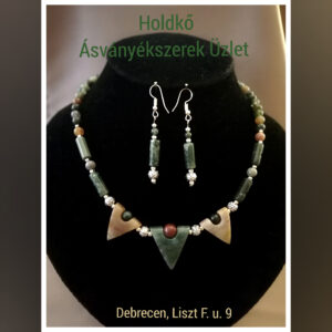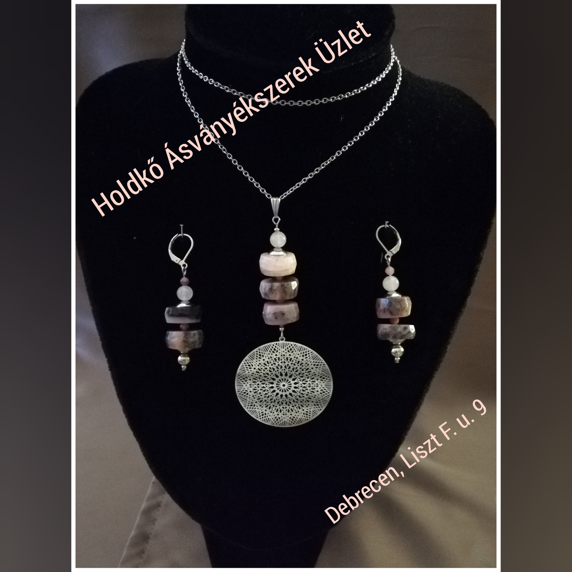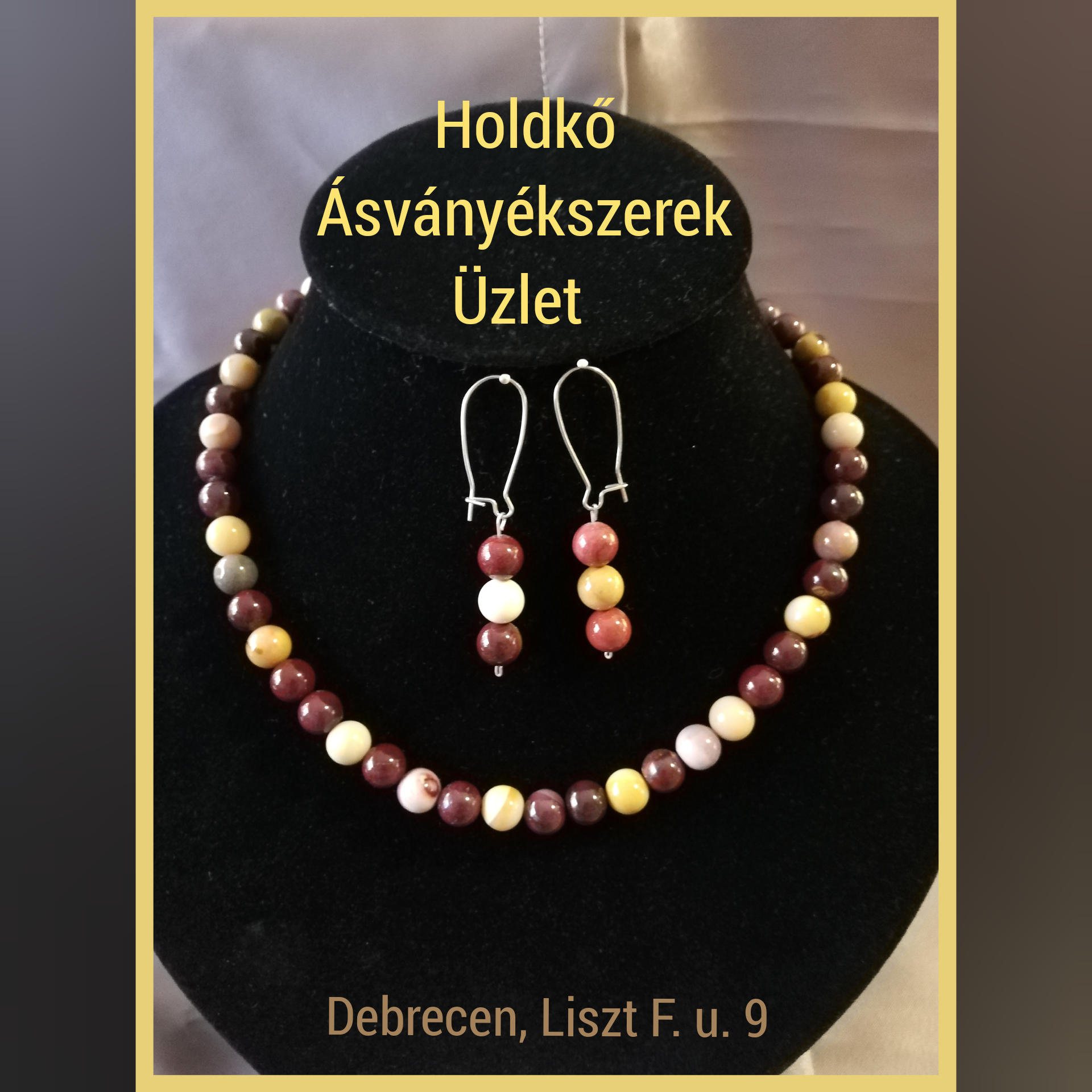 Mookait ásványból ( 6 mm-es) készült nyaklánc és fülbevaló . A szett darabonként is megvásárolható.